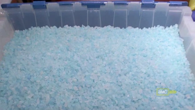 - El cristal azul utilizado en la producción de la serie consiste en azúcar cristalizado y partes de dulces de azúcar piedra.