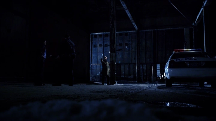 Los policías acuden a un callejón vacío y salen del coche, momento en el que Mike recoge sigilosamente una pistola que había ocultado en los compartimentos de los asientos antes. Mike se la guarda en su chaqueta justo antes de salir del coche.