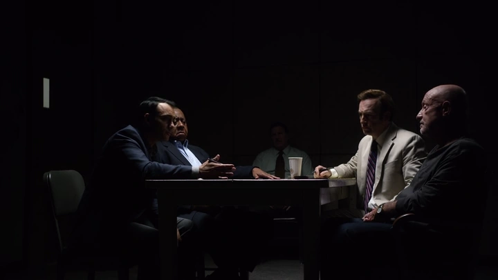 De vuelta al presente, Mike se encuentra en una sala de interrogatorios de la comisaría de Albuquerque con los detectives de Filadelfia Sanders y Abbasi. Aunque no se encuentra arrestado, Mike insiste en pedir que acuda un abogado: Jimmy McGill.