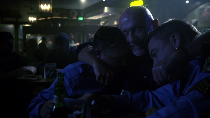 Llegado el momento de cerrar el bar, Mike es el último en salir. Según deambula por la calle, Fensky y Hoffman pasan a su lado en su coche policial y le ofrecen llevárselo. A pesar de su negativa, ellos insisten, metiéndolo en el asiento trasero y quitándole el arma. Fensky pregunta a Mike si lo que les dijo antes en el bar significa algo. El ebrio Mike afirma que está seguro de que Hoffman y Fensky son los responsables del asesinato de su hijo. Los dos se intercambian una mirada de preocupación.