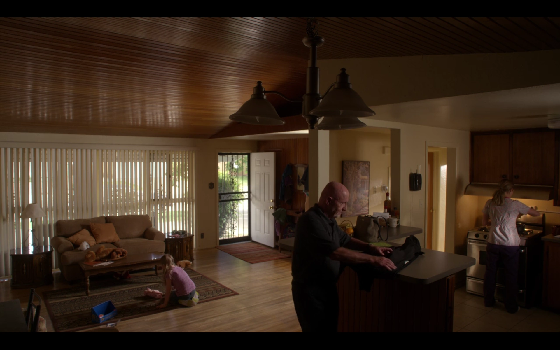 At Stacey’s house, Mike shows Kaylee how to play with a new toy. Satisfied that his granddaughter is entertained, he heads to the kitchen to deliver an envelope of money to help Stacey with her expenses. Mike notes that Stacey appears to be on edge. When he presses, she reveals that she’s been hearing gunshots in their neighborhood late at night. Mike insists on staying over to keep watch, but Stacey firmly turns his offer down.