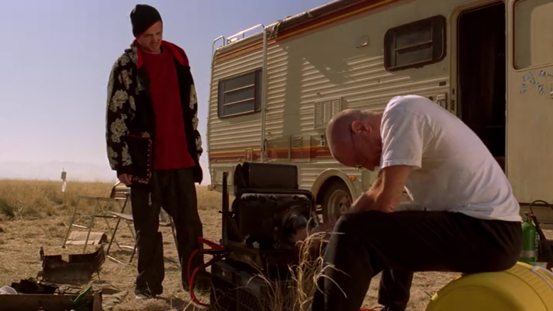 Jesse and Walt figuring out how to re-start the RV.