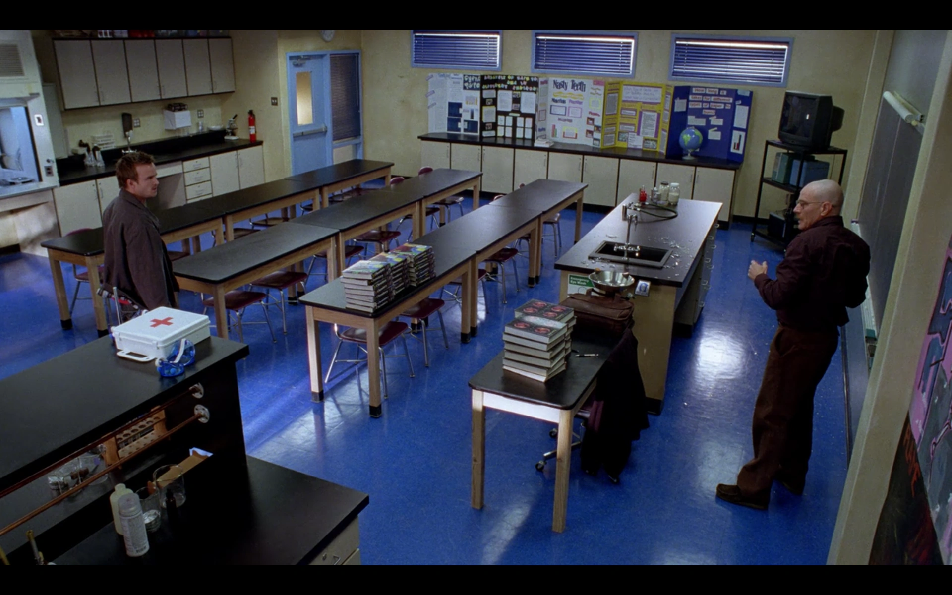 Jesse confronting Walt at his chemistry class in J. P. Wynne High School.
