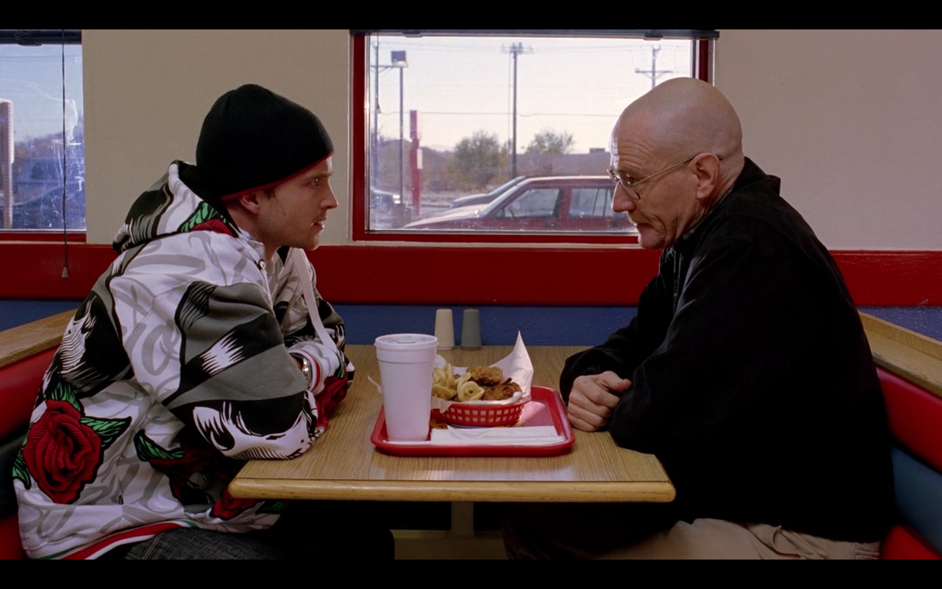 Jesse and Walt at Los Pollos Hermanos.
