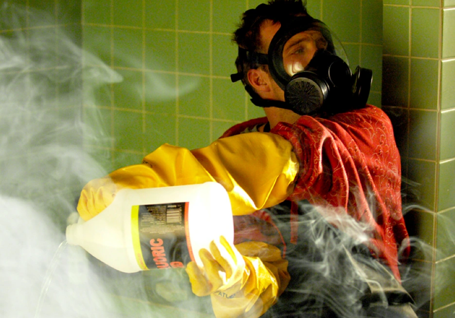 Jesse pouring hydrofluoric acid onto Emilio's corpse in his bathtub