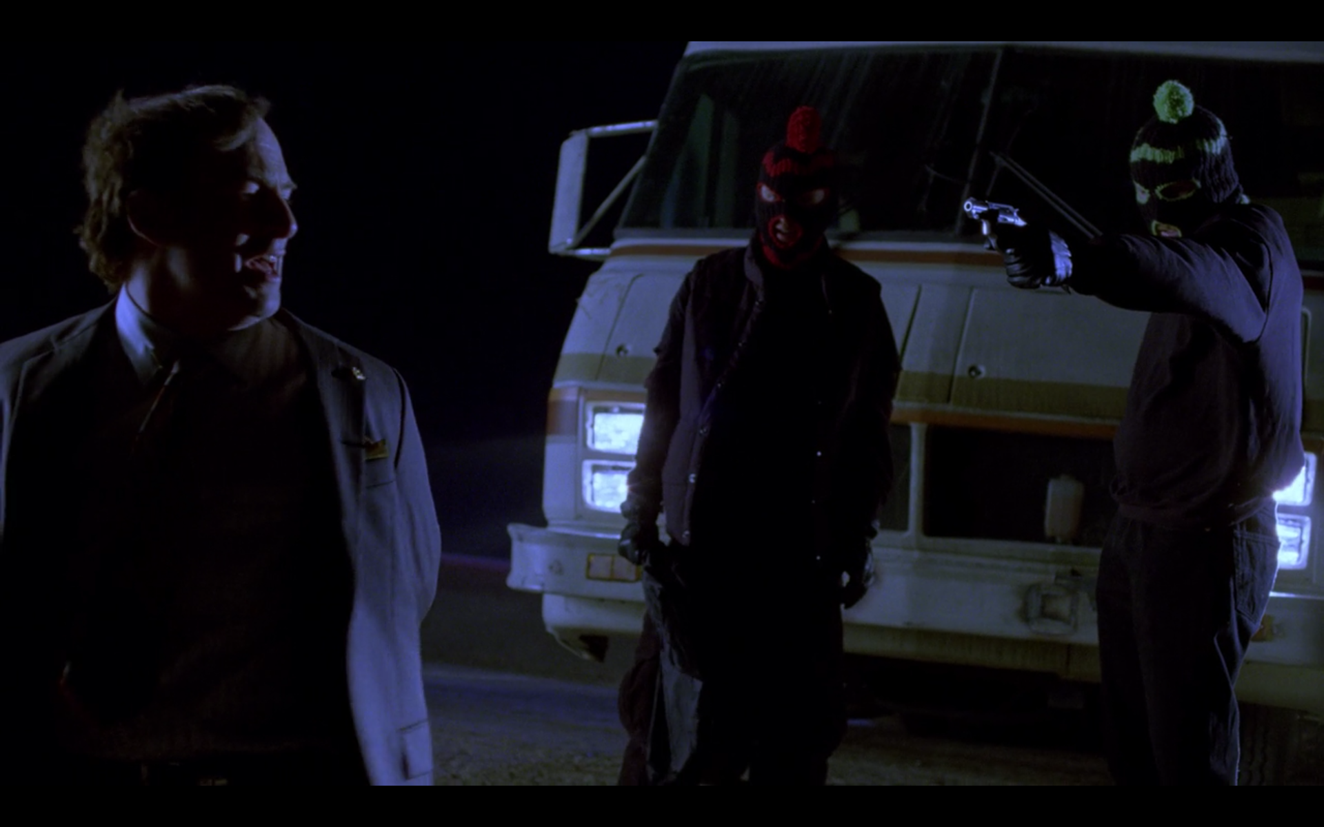 After nightfall, Walt and Jesse, donning ski masks, kidnap Saul as he leaves his office and haul him to a freshly dug shallow grave in the RV. Aiming a gun at Saul, Jesse instructs him to represent Badger and threatens to kill him if anyone snitches to the DEA. While Jesse and Walt have Saul on his knees in the desert, Saul utters "It wasn't me. It was Ignacio!" and he is relieved that "Lalo" didn't send them. Walt doubles over coughing, prompting Saul to recognize him. Saul instructs Walt and Jesse to remove their masks and each put a dollar in his pocket, thereby making their conversation protected by attorney-client privilege. The duo hear Saul's assessment of their situation: "Somebody’s going to prison. It's just a matter of who."