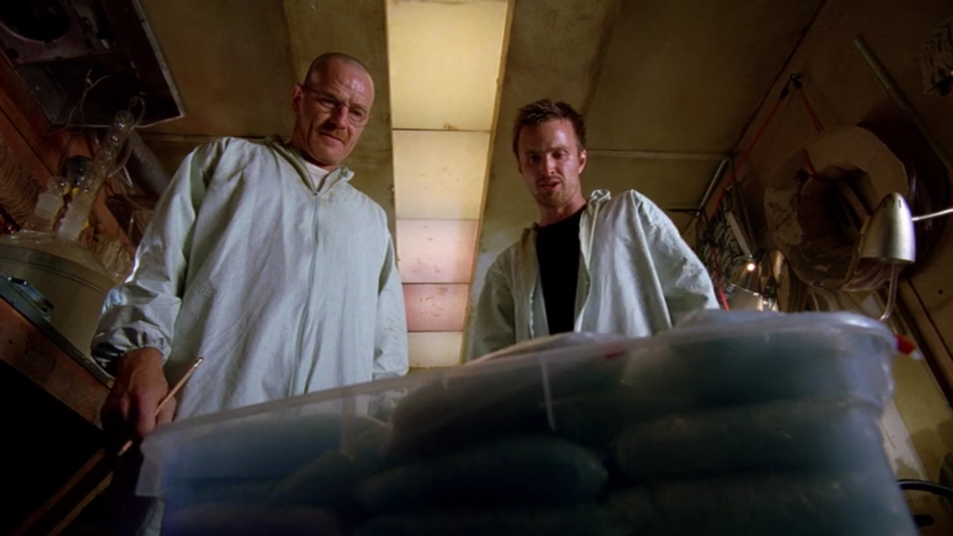Jesse and Walt about to cook meth in the RV.