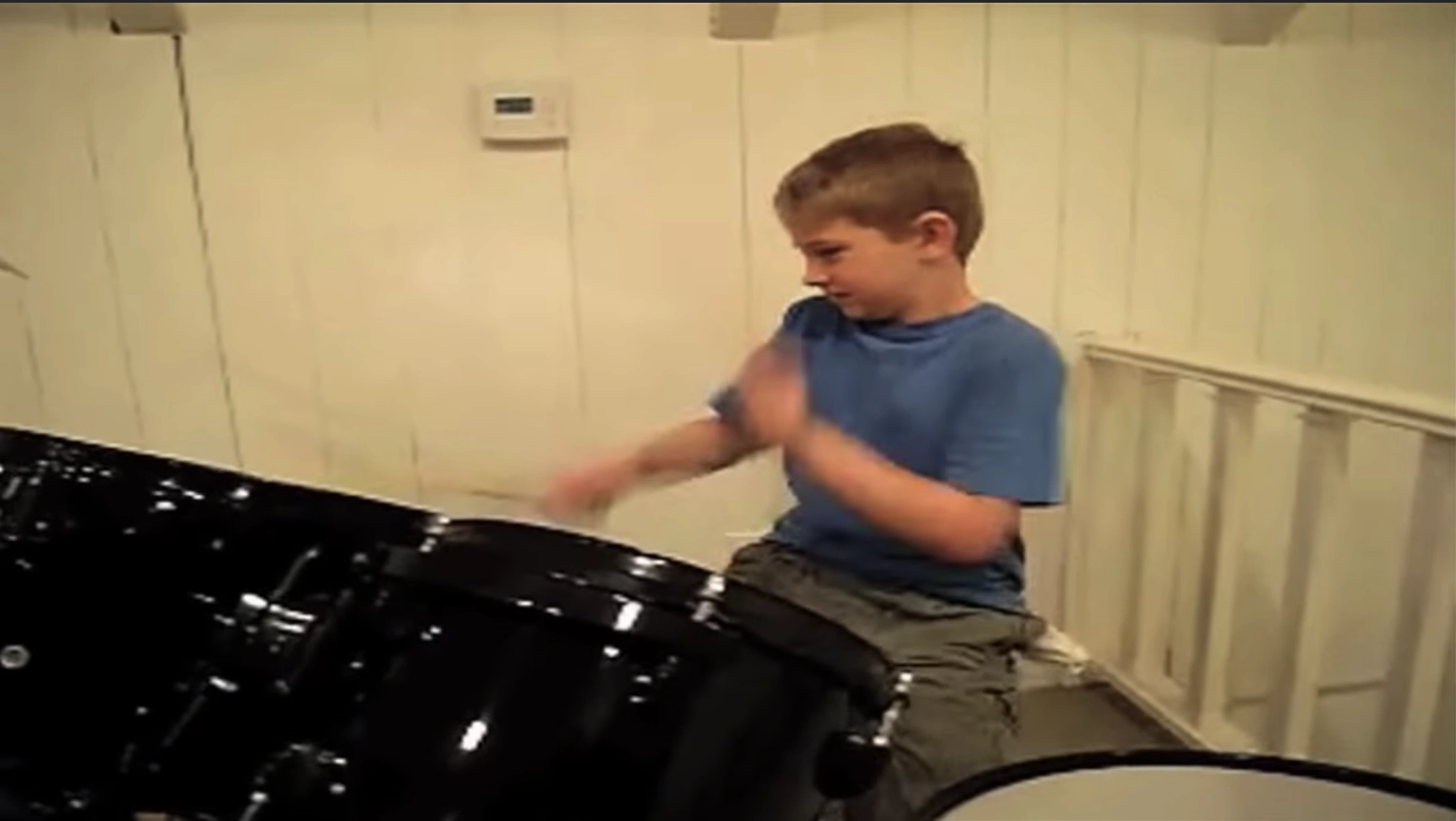 A young Jesse playing the drums.