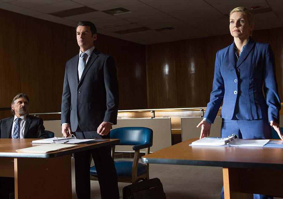 She also doesn't appreciate Jimmy coming to her rescue, even offering to quit Davis & Main for her. Sure, his actions may have been responsible for her current fall in favor, but she was the one who decided to make the push to vouch for him and it'll be her that'll get herself out of this. She does ask him to do one thing: survive a week without breaking the rules of the Bar Association or making his boss angry and don't kid himself that he's doing this for her benefit.