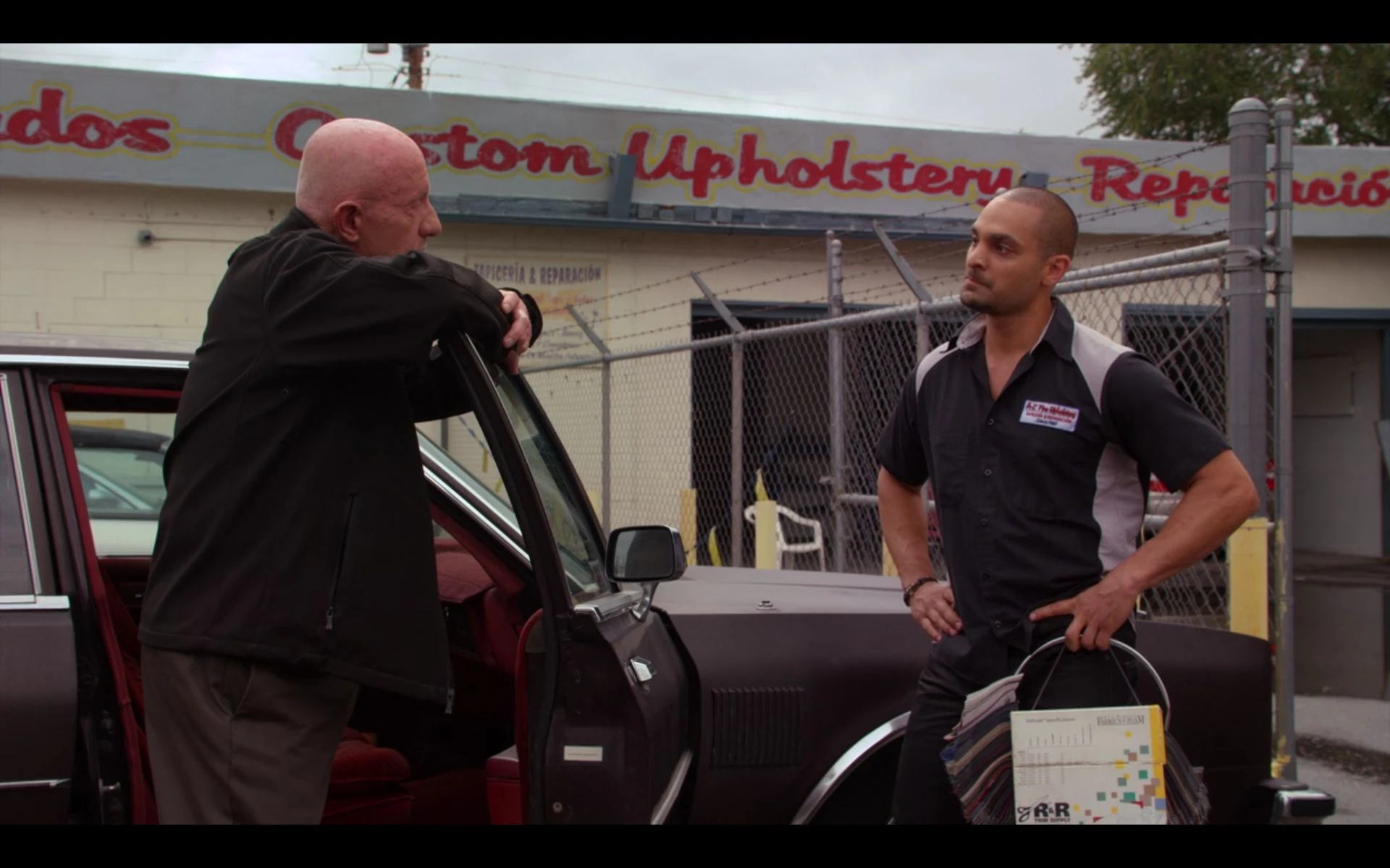 Nacho confronted by Mike Ehrmantraut ("Cobbler").