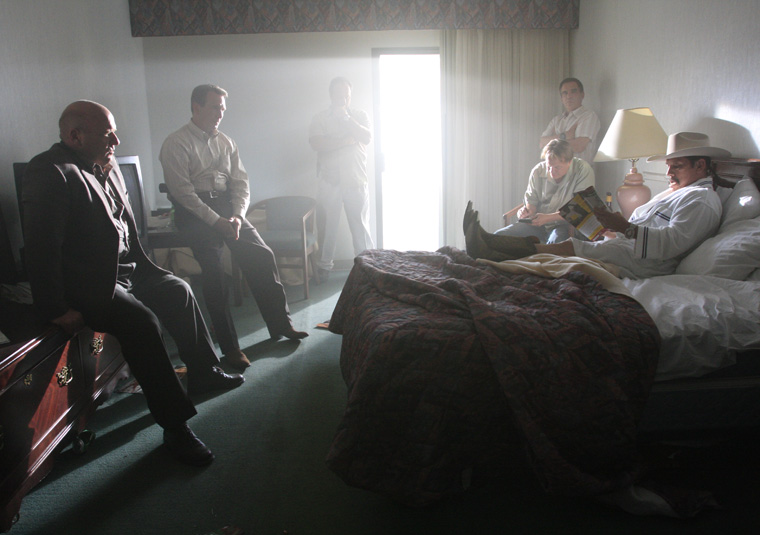 At his new office in El Paso, Hank mocks the idea of drug dealers praying to their patron saint, Jesús Malverde, and is the only one laughing at his own joke. When he asks his colleague Vanco why the saint's statue sits on his desk, the agent quotes Sun Tzu's The Art of War in saying that it's to help him know his enemy.