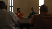 At the MDC, Jimmy is in an interview room when a shackled Krazy-8 is brought before him. Krazy-8 is initially perplexed as he never hired Jimmy, though his demeanor changes when Jimmy reveals that Lalo hired him. Krazy-8 insists he hasn't said anything incriminating to the police about the origin of the drugs. Jimmy then asks if he's good at memorizing information and hands him a notepad with a written script.
